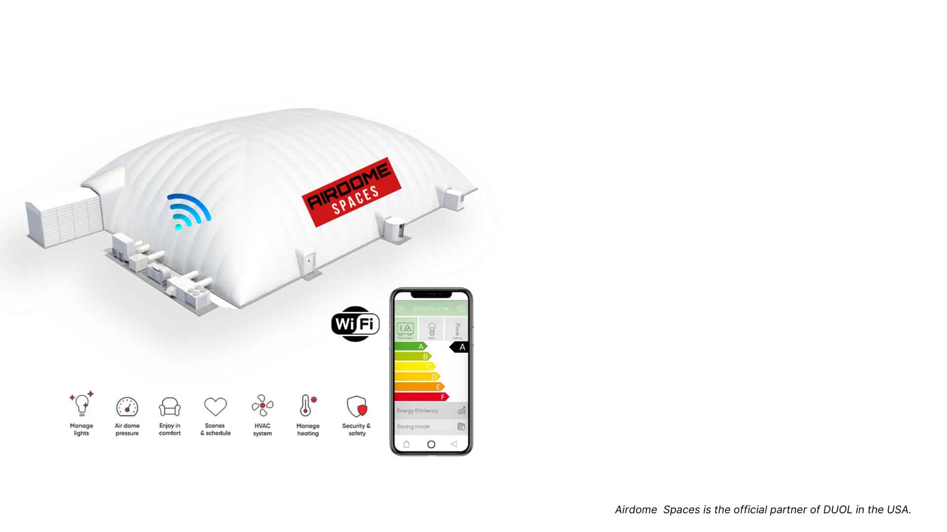 The SmartDome app allows you to monitor the status, adjust temperature and lighting, and automate other smart functions within your air dome. The mobile app allows you to easily manage activities and diagnose the health of your air dome, all conveniently within your reach.